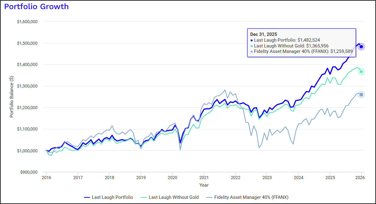 Figure #3: Last Laugh Portfolios Growth of Investment with Fidelity Asset Manager 40%