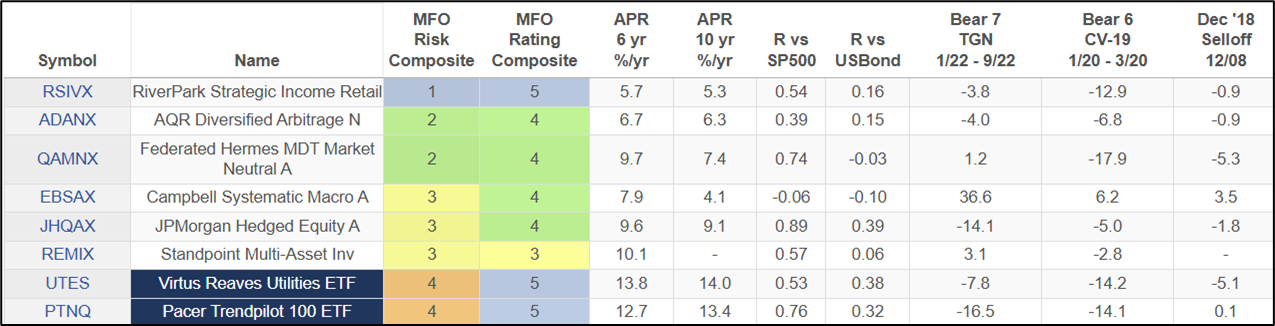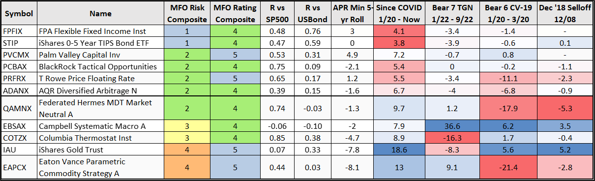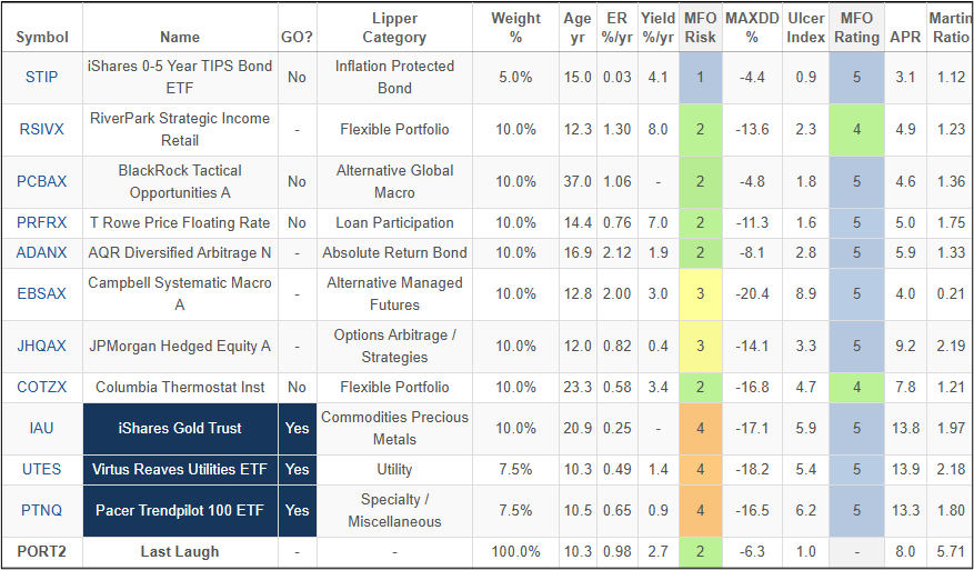Table #4 contains the Last Laugh Portfolio for the past ten years. The funds are sorted by composite MFO Rating to reflect long-term risk.