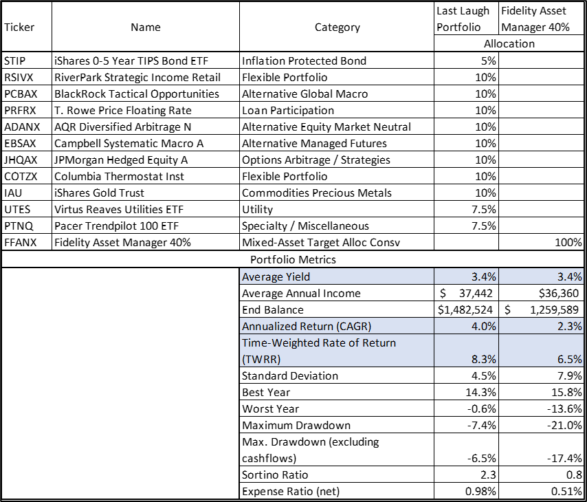 Table #3: Last Laugh Portfolio Compared to Fidelity Asset Manager 40%