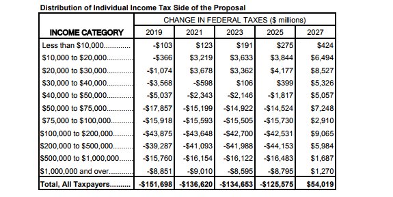 Never mind that in 2027, under this bill our taxes will drop just 0.5%, from 14.5% to 14.0%. That's a 3.4% reduction in rates. Their rates will drop from 1.5% from 32.1% to 30.6%. That's 4.7%.